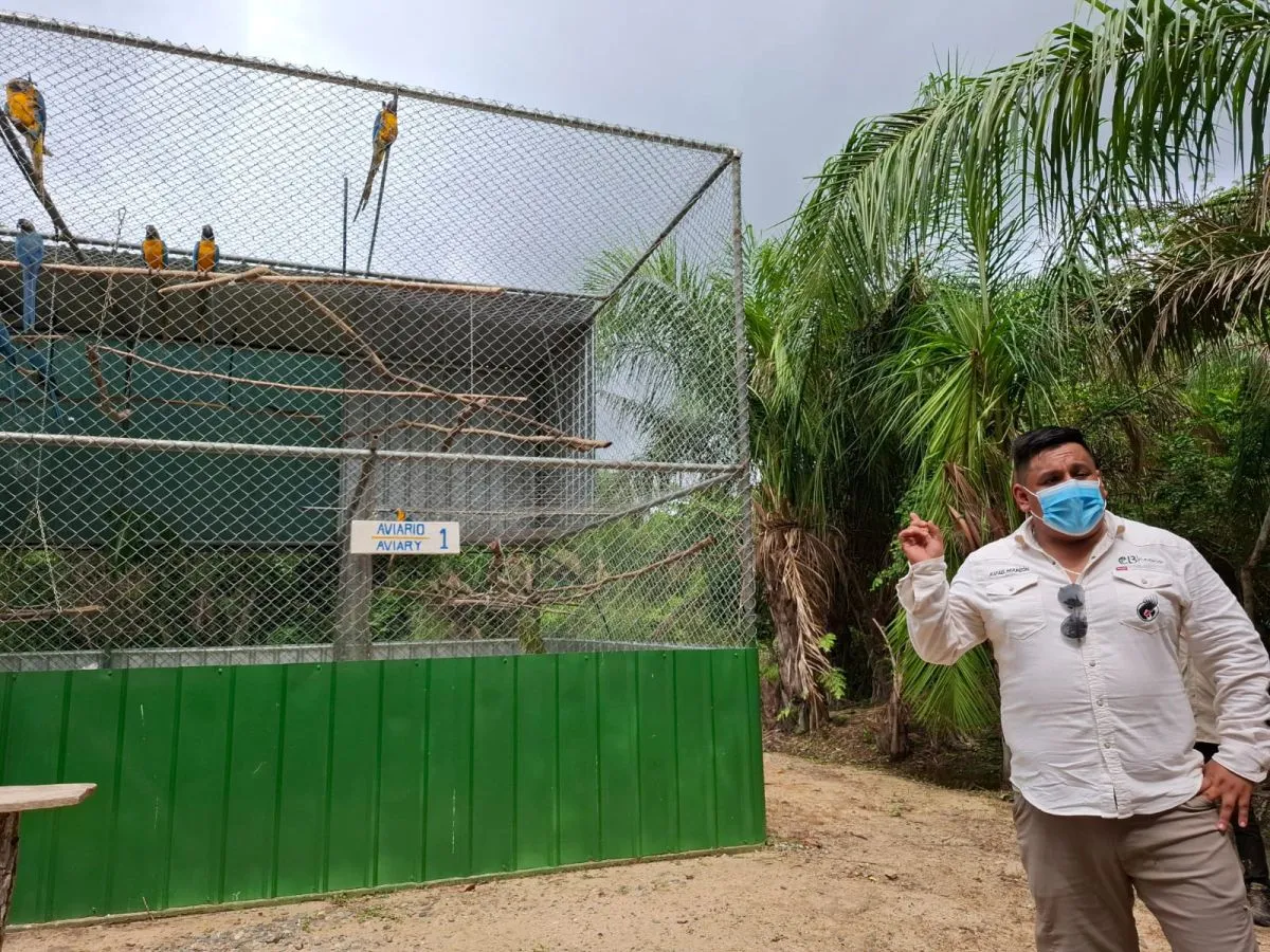 Las aves se encuentran en amplias jaulas. No pueden ser liberadas, pues su estado de cautiverio las condenaría a la muerte en la vida salvaje, donde son amenazadas por depredadores naturales como reptiles u otras aves de mayor tamaño, o por la misma mano del hombre, que si bien ya no las captura para el tráfico ilícito sí invade sus territorios con fuego y hacha para expandir su ganado o sus cultivos.