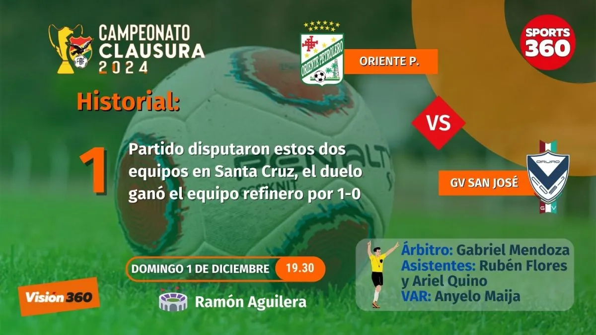 En procura de volver a los puestos de Copa Sudamericana 2025, Gualberto Villarroel San José visitará este domingo (19.30) a Oriente Petrolero en Santa Cruz por la fecha 24 del torneo Clausura, en el que Real Tomayapo y Wilstermann se enfrentarán en Santa Cruz (17.30).