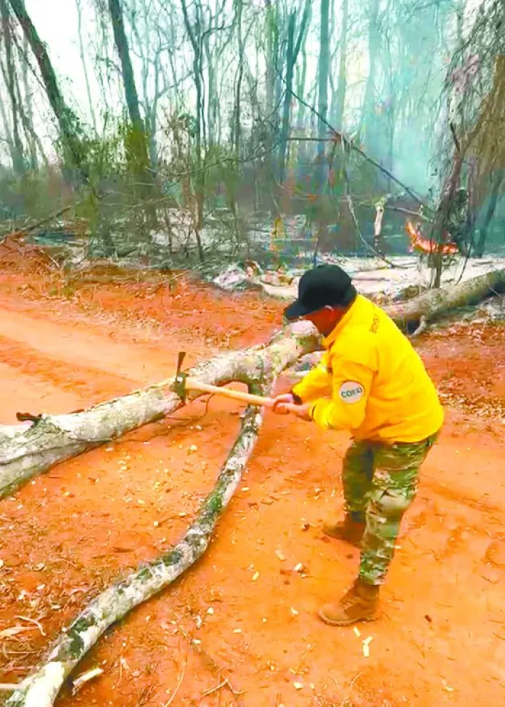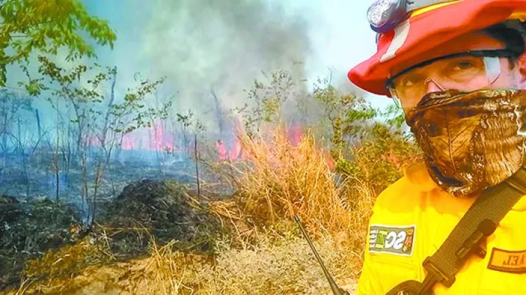 El burgomaestre dejó su oficina –momentáneamente– para vestir el uniforme y salir para ir a combatir el fuego que afectó al bosque seco chiquitano entre junio y octubre de este año.