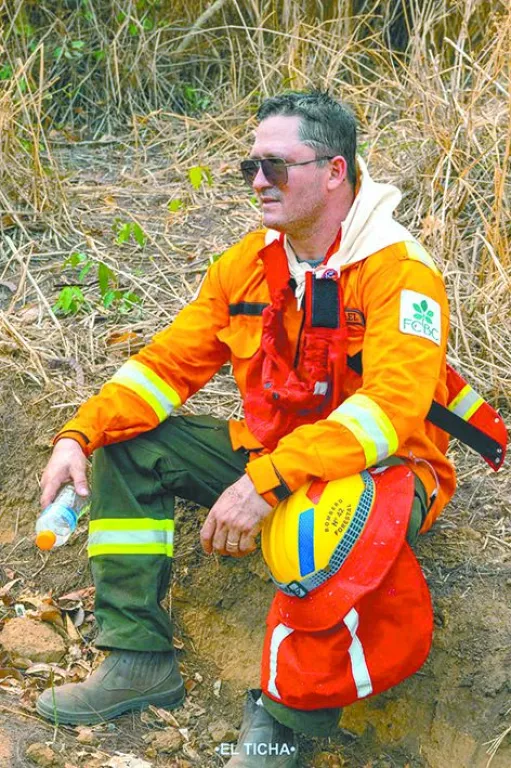 Humberto Jorge Vargas Roca, alcalde de este municipio, es filósofo y seminarista de formación, y llegó a ser alcalde de la tierra que lo vio nacer, pero la abnegación por su pueblo lo llevó a colocarse el casco y traje de bombero voluntario desde 2019, un año trágico para la Amazonia boliviana y particularmente para el bosque seco chiquitano.
