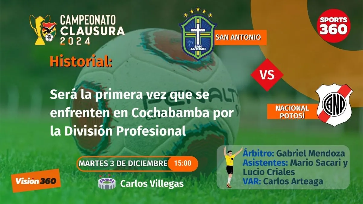 La jornada de este martes comenzará en la localidad de Entre Ríos con el lance que protagonizarán San Antonio y Nacional Potosí (15.00).