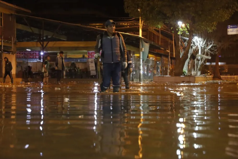 El desborde del río Chijllawiri causó la inundación de Colcapirhua, en el departamento de Cochabamba, donde decenas de viviendas se vieron afectadas por el ingreso de agua, así como muchas calles céntricas quedaron anegadas por el agua que, en algunos sectores, superaba los 70 centímetros.