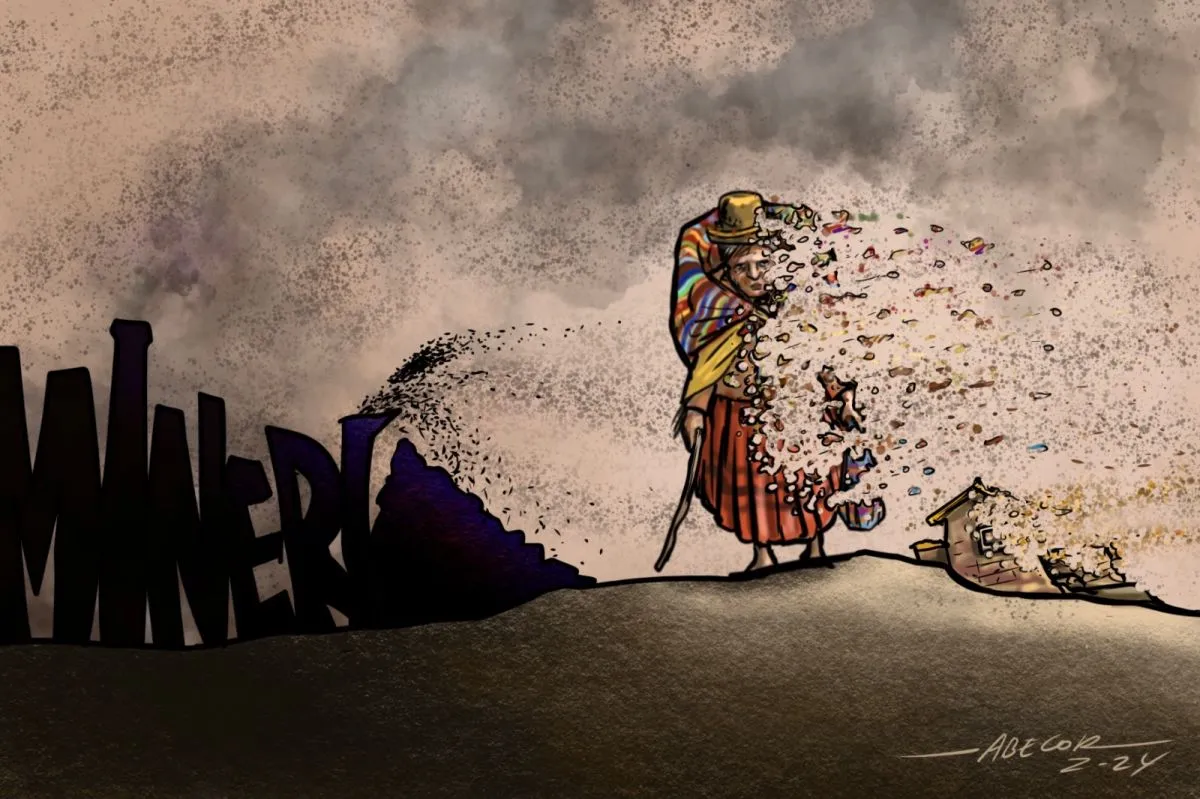 La caricatura que ganó el premio de la APLP es del artista plástico y caricaturista Abel Bellido (Abecor), y es sobre la contaminación minera. Fue publicada el 8 de septiembre de la gestión en curso.