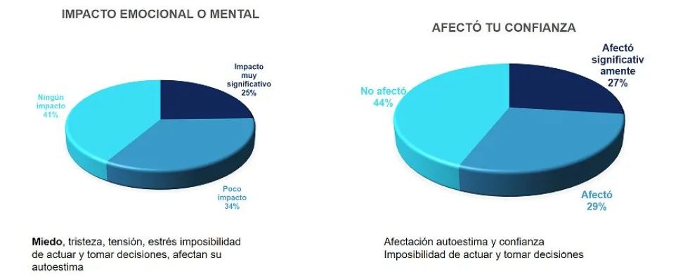 En cuanto a si el hecho afectó su confianza o autoestima, o la posibilidad de actuar y tomar decisiones, el estudio muestra que el 27% dijo que sí, “de manera significativa”, el 29% señaló que “le afectó”, y el 44%, que no.