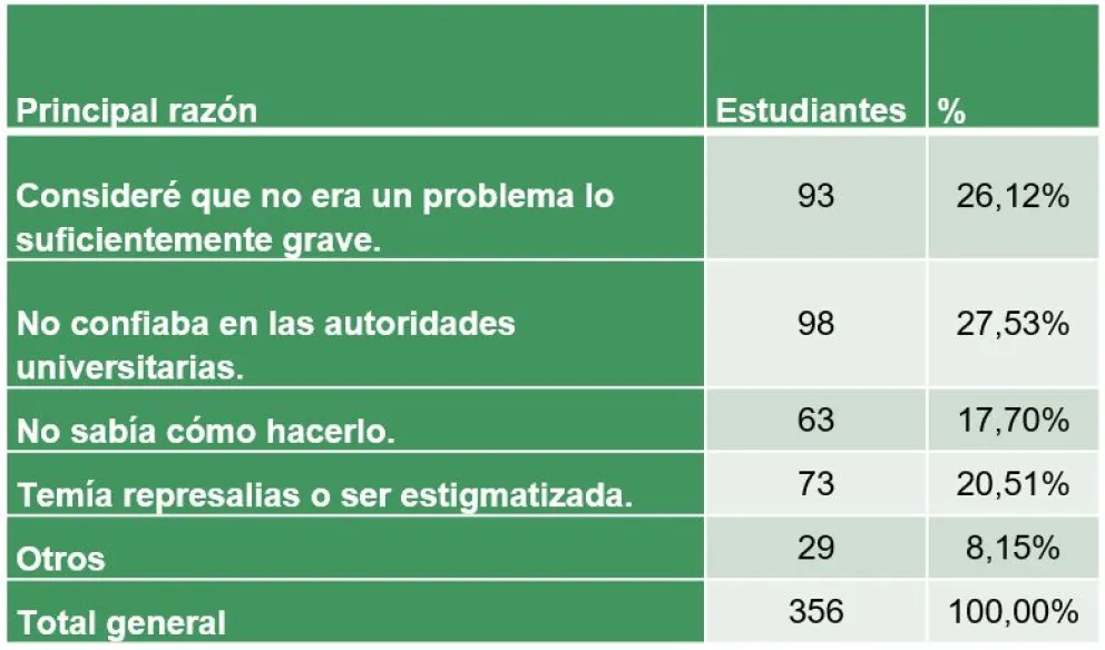 “Hay un dato que este estudio revela. Habitualmente dijimos que el principal agresor en el ámbito universitario es el docente, ¿no? Las cifras nos dicen que el principal agresor es su pareja”, señaló.