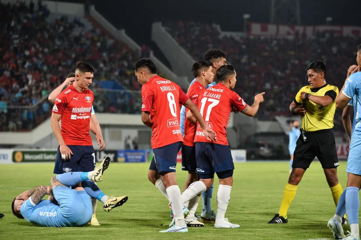 En el festejo hubo una fuerte discusión entre Orihuela y Marvin Bejarano. El jugador de Bolívar terminó en el piso por un manotazo y ambos recibieron la cartulina amarilla, el académico por bajarse del carro camillero cuando lo sacaban de la cancha.
