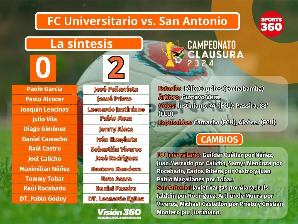 Los dos clubes ya aseguraron un lugar en copas internacionales: San Antonio jugará la fase de grupos de la Copa Libertadores 2025 tras coronarse campeón del Apertura y FC Universitario está clasificado a la Copa Sudamericana en su calidad de subcampeón de ese torneo.