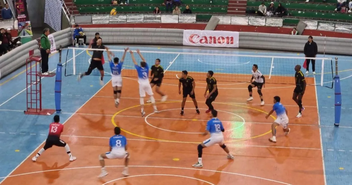 Partido entre Deportivo Ejército (de azul) y San Martín. Foto: Federación Boliviana de Voleibol.