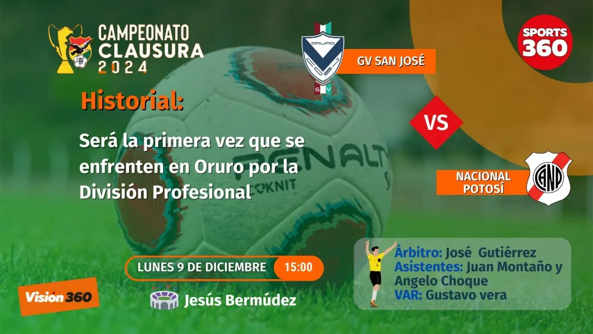 GV San José tiene la gran oportunidad de consolidar esta tarde su participación en la próxima Copa Sudamericana .Los orureños recibirán desde las 15.00 a Nacional Potosí en el inicio de la fecha 27 del campeonato Clausura.