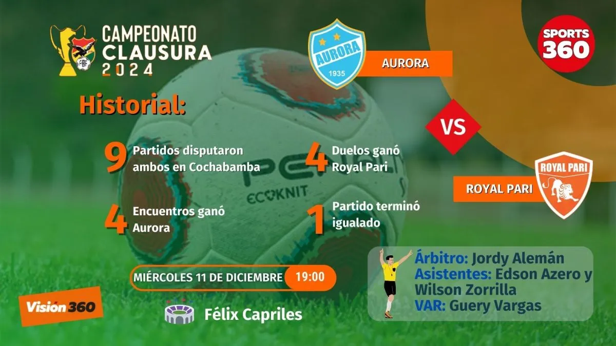 La jornada del miércoles tendrá otros dos partidos: Aurora vs. Royal Pari en Cochabamba y Guabirá vs. Wilstermann en Montero.