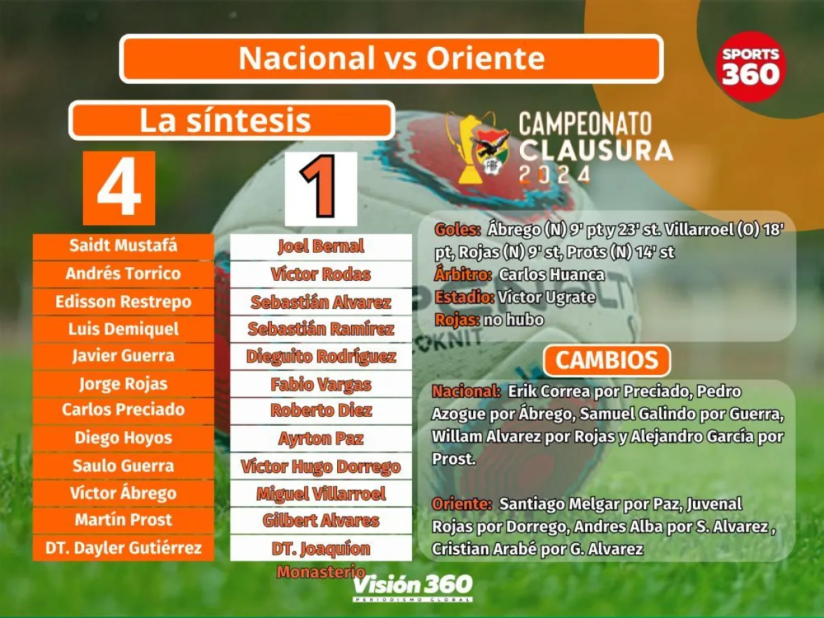 Nacional goleó a Oriente petrolero por 4-1 en la Villa Imperial. Con la derrota del cuadro cruceño, Bolivia ya tiene a los ocho clasificados a torneos internacionales para el 2025.