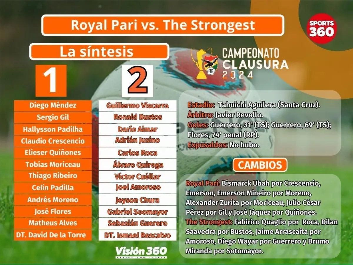 The Strongest le ganó a Royal Pari en la tarde de este sábado (1-2), partido de la jornada 28 que se jugó en el estadio Tahuichi Aguilera de Santa Cruz, y se mantiene en la lucha por conquistar el título del torneo Clausura.