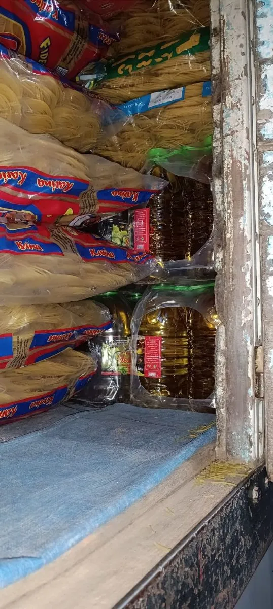 Uno de los camiones en su intento de eludir los controles volcó en una carretera. El aceite y otros alimentos se derivaron a Emapa para su comercialización.