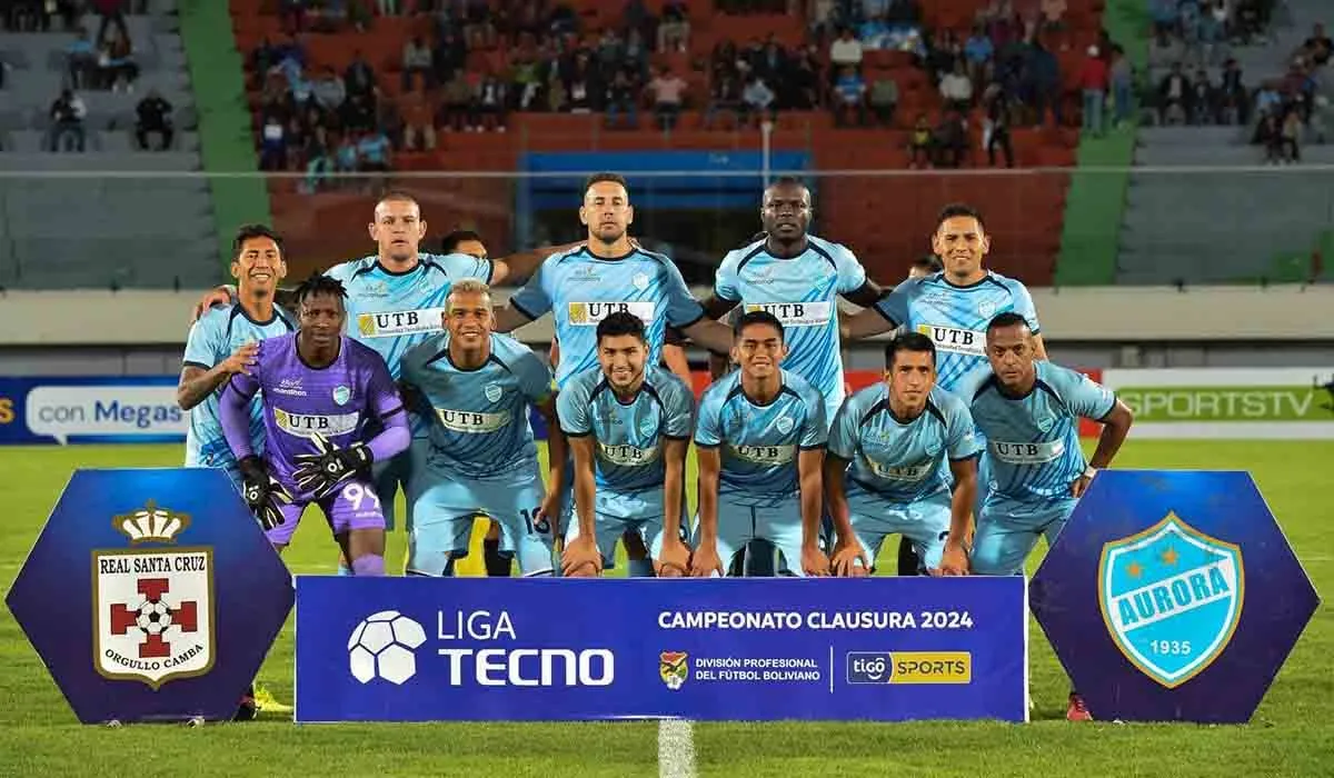 El plantel de Aurora previo a su partido con Real Santa Cruz. Foto: APG.