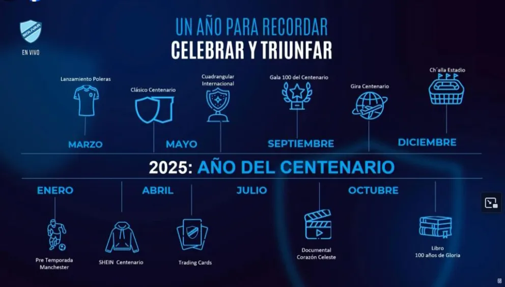 "Al año será fantástico, el mejor año de la historia del club. Para mí es un honor y orgullo ser presidente del club más importante de Bolivia. Hemos construido una agenda que es un tributo a nuestro legado y es un mapa hacia un futuro más brillante”, dijo el presidente académico Marcelo Claure en la presentación de la Agenda Centenario que hizo este jueves desde Estados Unidos.