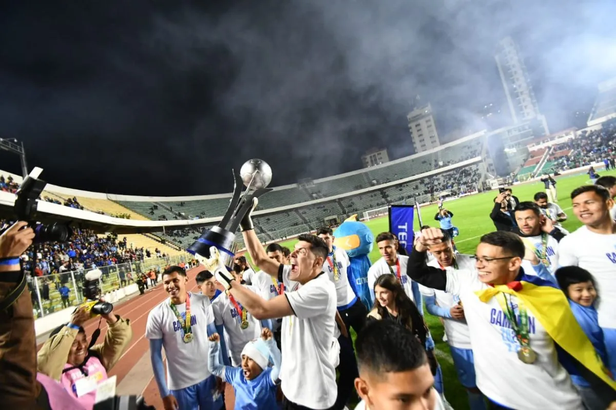 José Antonio Claure, gerente de marketing de la Federación Boliviana de Fútbol fue el encargado de entregar el trofeo al capitán Leonel Justiniano, quien levantó la copa junto a sus compañeros en una fiesta que se pintó de celeste en el Siles.