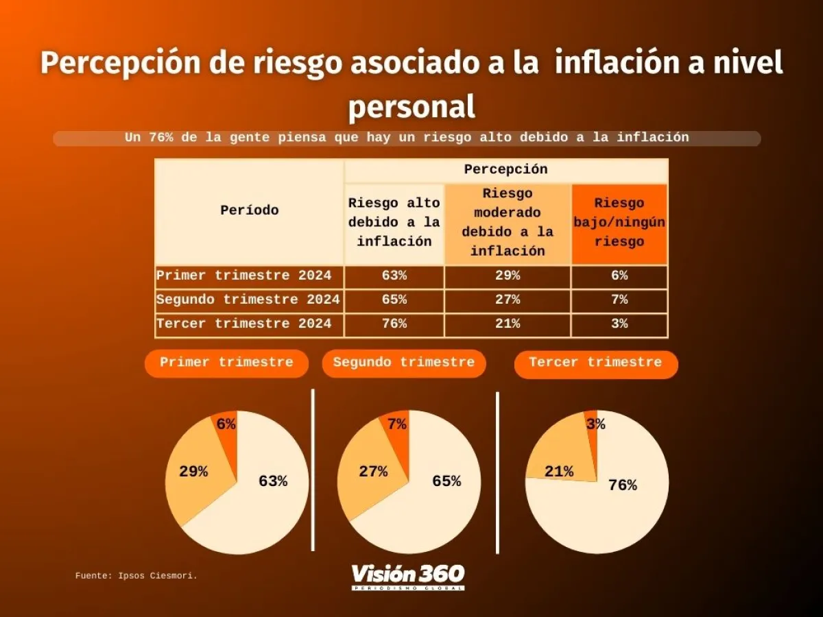 En el tercer trimestre, un 76% de la gente tenía la percepción de que el riego debido a la inflación era alto, un 21%, moderado, y un 3% que no existía riesgo.