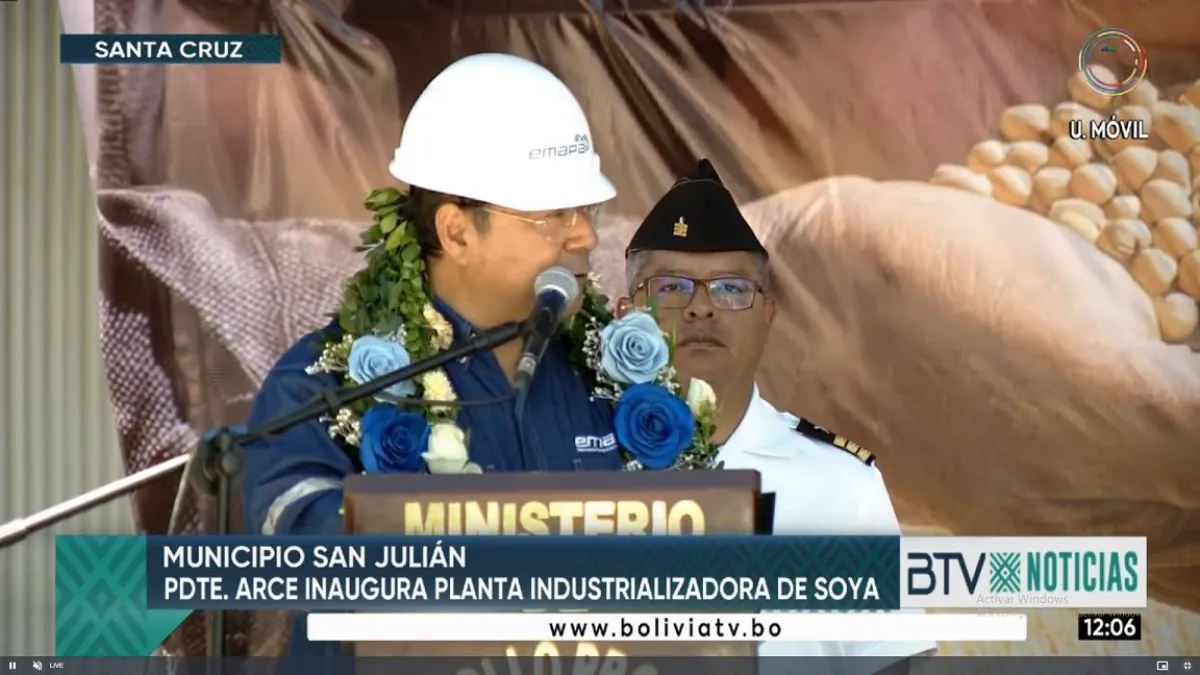 El presidente Luis Arce entregó este jueves una planta de transformación de soya en el municipio de San Julián de Santa Cruz y durante su discurso aseguró que “la industrialización de país no es cuento” y se autocalificó como el “presidente industrializador”.