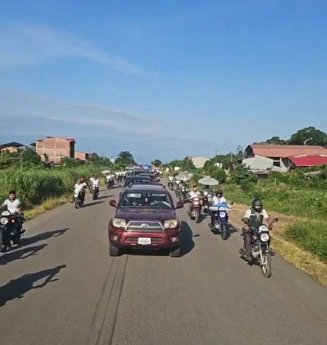 Decenas de cocaleros rodearon en sus motocicletas una caravana de vehículos, en uno de los cuales estaba Morales.