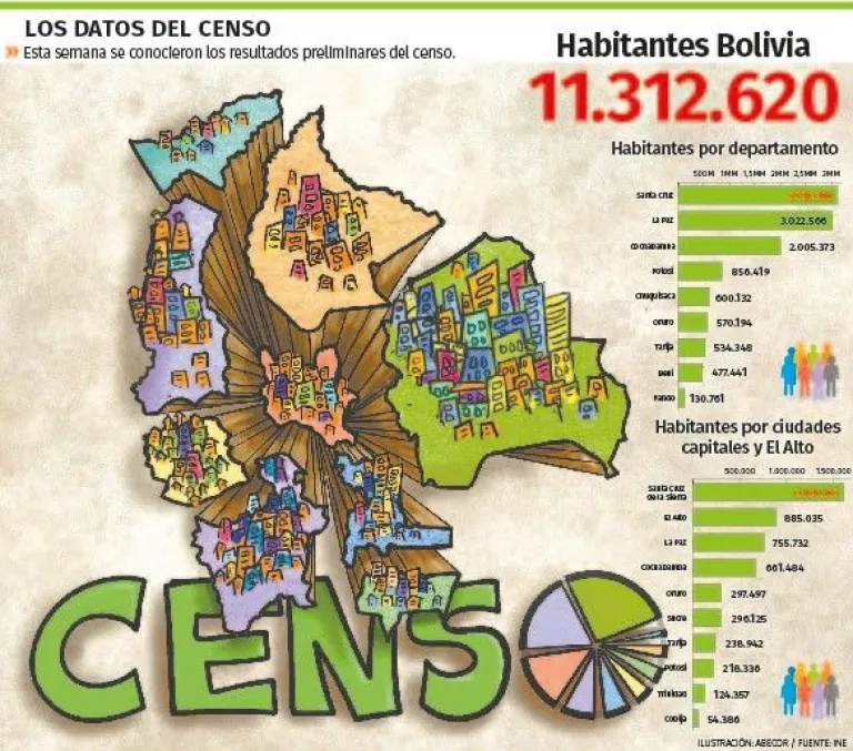 Y es que los resultados del Censo establecieron que Bolivia cuenta con  11.312.620 habitantes, una cifra muy por debajo de los más de 12 millones de personas que estimó el INE en sus proyecciones poblacionales para 2024. La explicación: la población boliviana había dejado de crecer, por diferentes factores de tendencia mundial.
