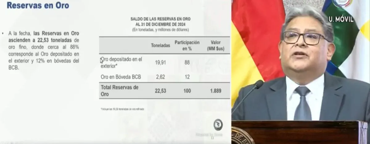 El presidente del BCB muestra las cifras sobre las reservas de oro. Foto: Captura