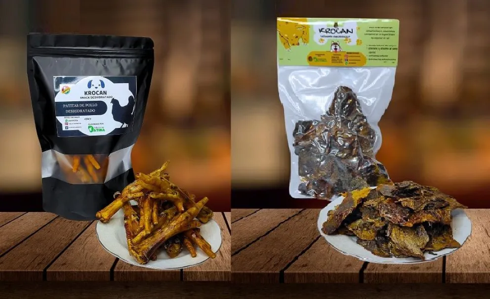 “Este producto nosotros lo conocemos como snacks deshidratados, que son hígado de pollo, hígado de res, alimentos 100% naturales, no tienen conservantes, colorantes ni ningún tipo de aditivo. Están especialmente formulados para nuestros cachorritos, que necesitan en su alimentación lo que es la proteína, y estos alimentos les proporcionan en su mayoría proteína 100% animal de la más alta calidad”, señala Cristian Condori.