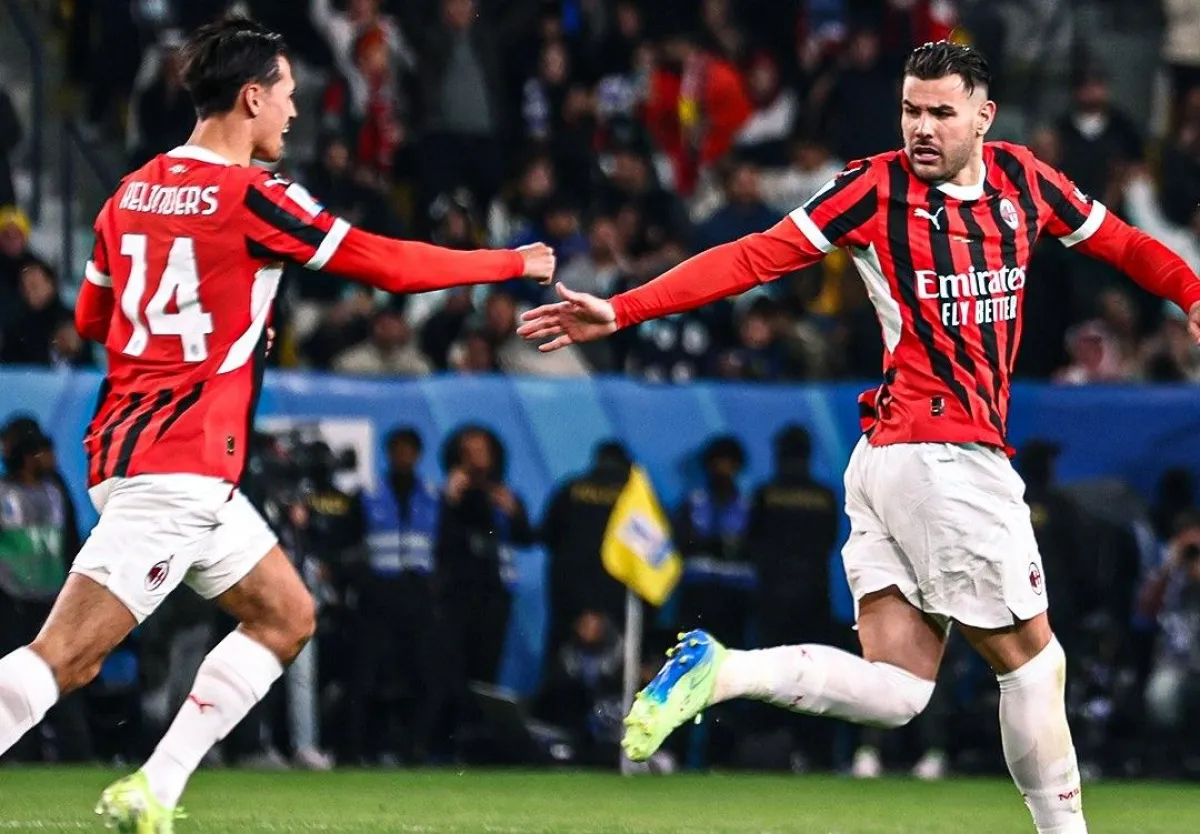Reijnders (izq.) y Theo Hernández festejan el primer gol del Milan en la final de Arabia Saudita. Foto: AC Milan.