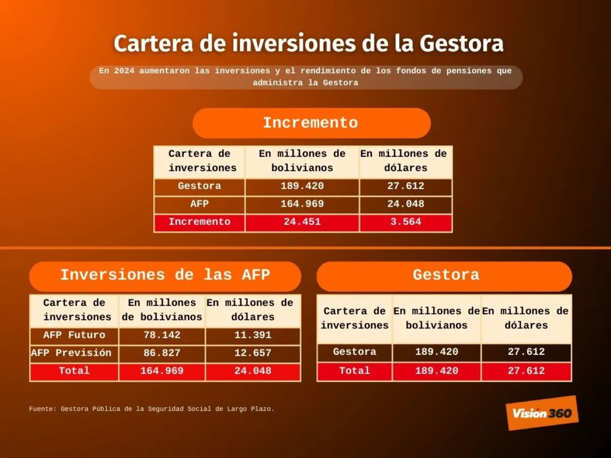 “Desde mayo de 2023, la Gestora está a cargo de la administración total del Sistema Integral de Pensiones (Sip). Ese mes cuando las AFP dejaron de administrar las pensiones, el rendimiento era de 2,7% y el año pasado al 31 de diciembre hemos alcanzado con la Gestora un rendimiento de 4,26%”, resaltó Durán.