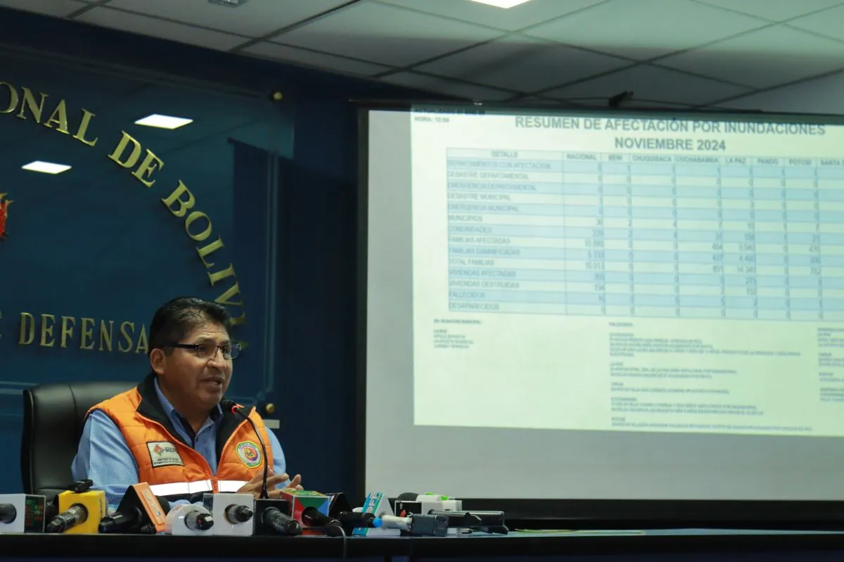 El viceministro de Defensa Civil, Juan Carlos Calvimontes, informó que desde noviembre de 2024 las lluvias provocaron el fallecimiento de 16 personas. Calvimontes confirmó que el número de fallecidos subió a 16, en comparación con los 14 reportados el lunes.