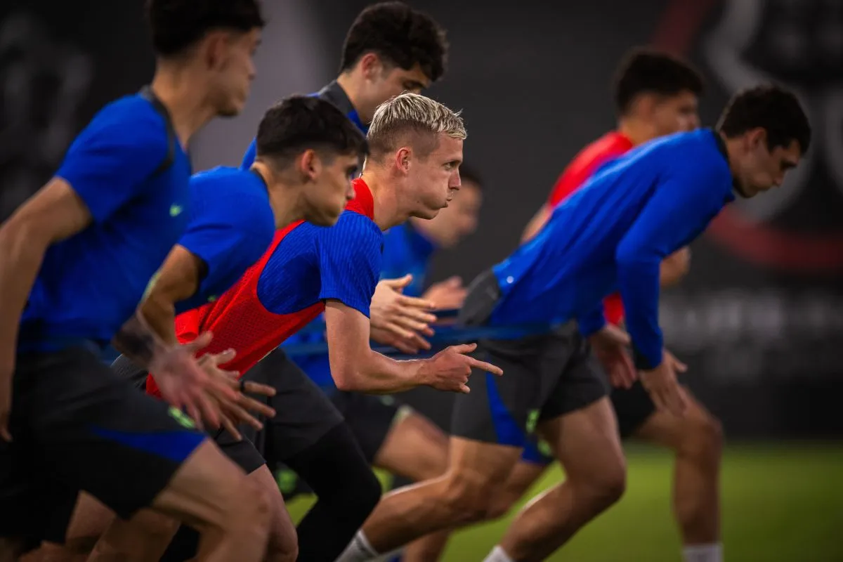 Dani Olmo (centro) en el último entrenamiento del cuadro azulgrana. Foto: FC Barcelona