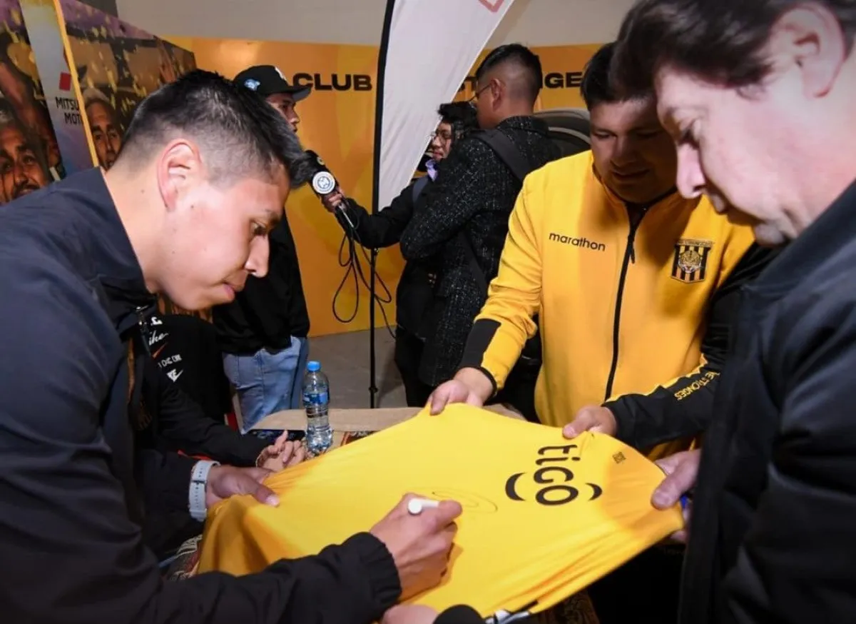 Diego Wayar firma autógrafos para los hinchas de The Strongest.