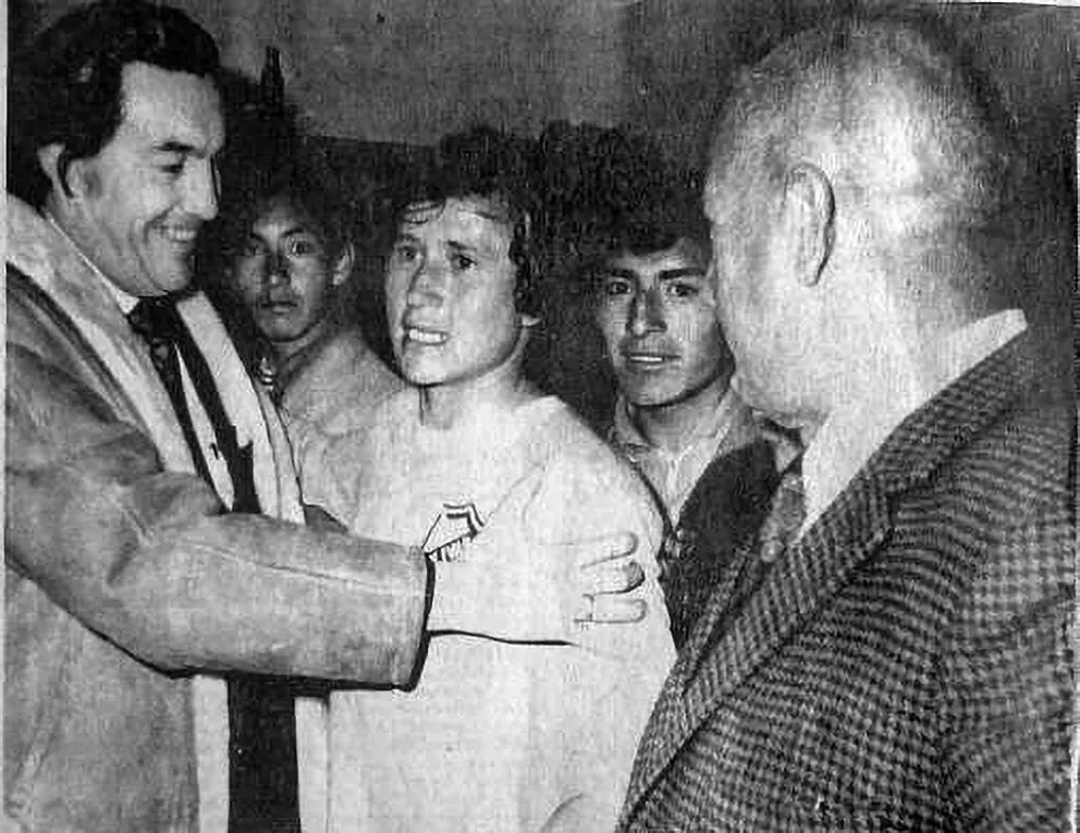 Mario Mercado (izq.) saluda a Juan Carlos Oropeza en 1971. Foto: Colección Julio Mamani.