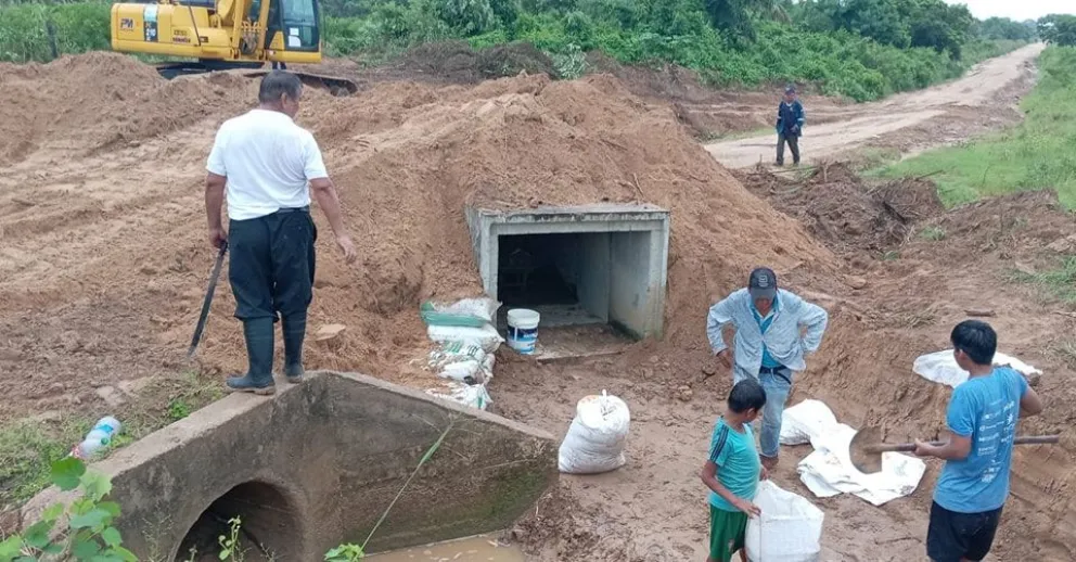 Las intensas lluvias registradas en los últimos días generaron una erosión que afectó las alcantarillas en la comunidad Bellas Niguas, en Santa Rosa del Sara en Santa Cruz.  Foto: Gobernación de Santa Cruz.