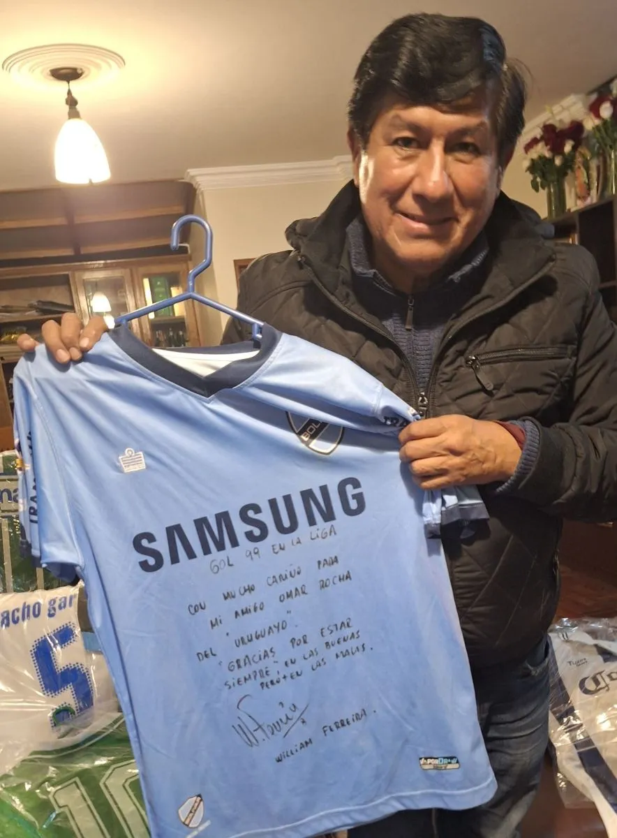 Los mejores recuerdos que tiene Omar Rocha de su estrecha relación con el fútbol son las camisetas que le obsequiaron jugadores, como muestra de su afecto, amistad o para reconocer su labor.