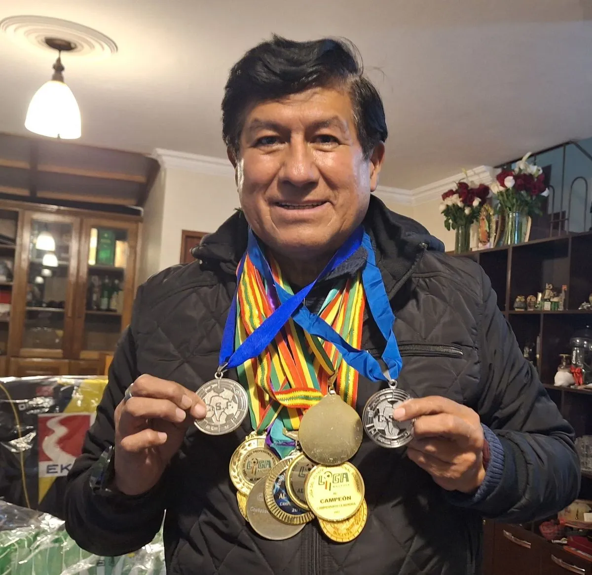 Colección de medallas. Destacan dos subtitulos: una con la Selección en la Copa América de 1997 y otra con Bolívar en la Sudamericana de 2004. Foto: Jorge Asturizaga.