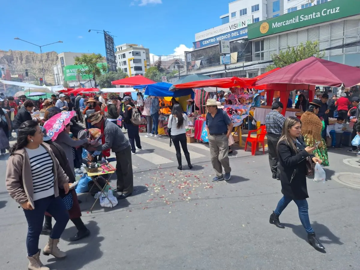 Más afectado fue el centro paceño. Desde la avenida 6 de Agosto, pasando por El Prado, San Francisco y la Plaza Murillo, miles de vendedores ofrecían sus productos.