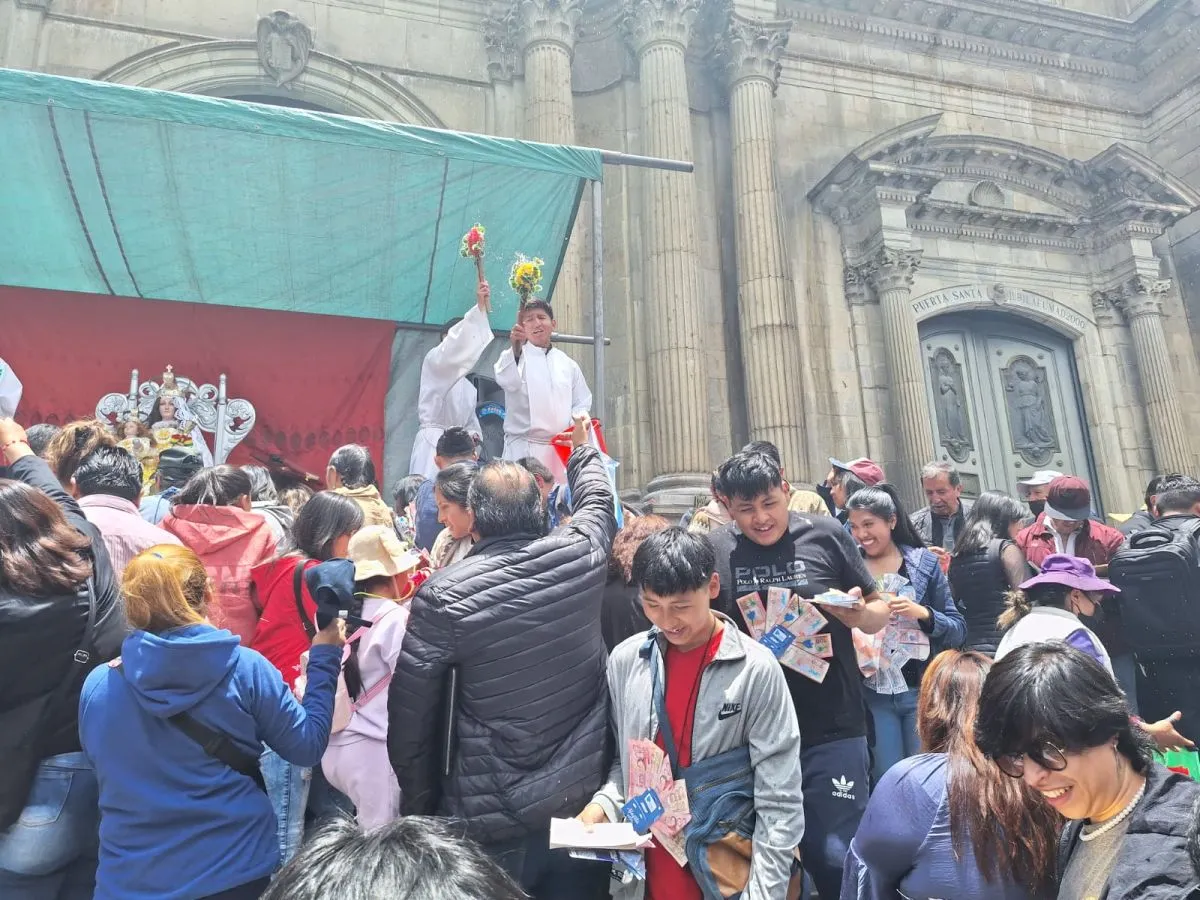 La catedral instaló un altar en sus puertas, donde monaguillos rociaban con agua bendita a los compradores, mientas entonaban bendiciones, todo para garantizar que los deseos se hagan realidad.