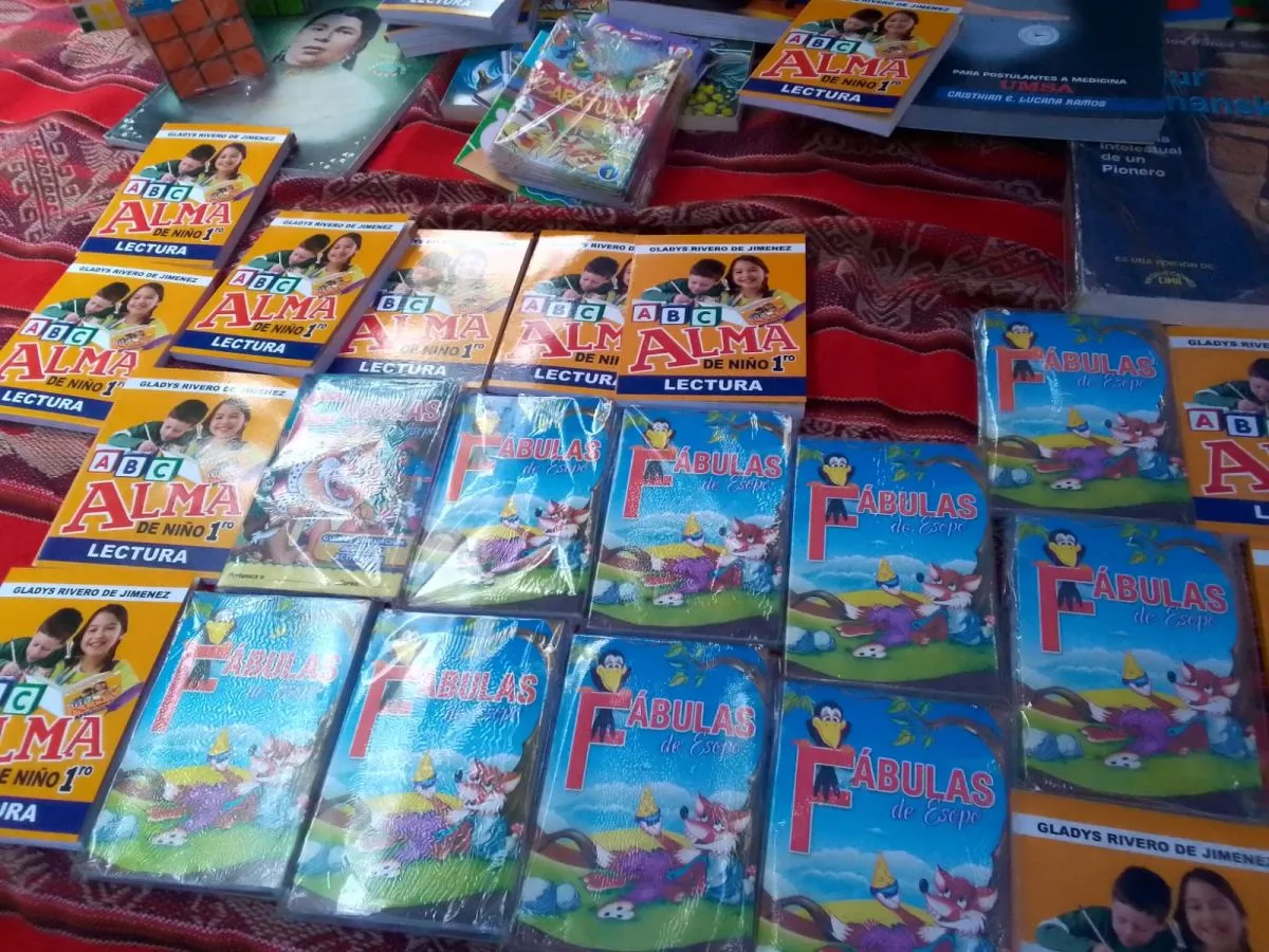 Por su parte, la librería Editorial Chakana ofrece las tradicionales Fábulas de Esopo, pero en formato miniatura. Artesanías Suma Qamaña trajo productos elaborados en cuero de oveja y material reciclado como hojas de la planta del plátano. La Editorial del Estado, bajo el objetivo de democratizar el conocimiento, llegó a la feria con la serie Cuentos mágicos, cuyo costo será de Bs. 2, y el texto Rescatando la memoria de nuestras abuelas y abuelos estará disponible a Bs. 5.