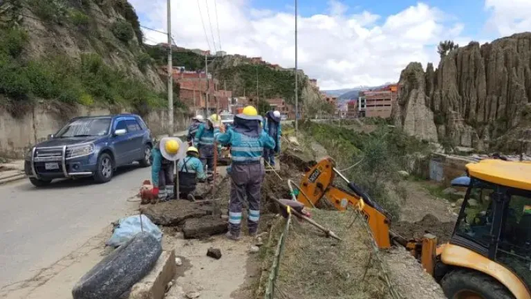 “Tras una evaluación inmediata, hemos diseñado un plan de acción que incluye la construcción de un muro de gavión para estabilizar la plataforma, seguido del recapeo con cemento asfáltico. También realizaremos trabajos integrales de limpieza de aceras y bacheo de puntos aislados”, informó el director de Mantenimiento del municipio de La Paz, Ludwig Gálvez.