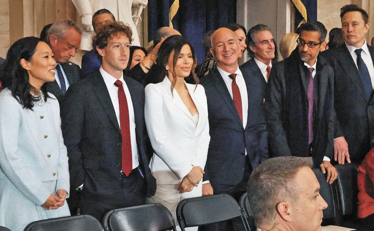 Durante la ceremonia de investidura estuvieron presentes el fundador de Amazon, Jeff Bezos; los CEO de Apple, Tim Cook; de Meta, Mark Zuckerberg; y de Google, Sundar Pichai. También se pudo ver al fundador de OpenAI y creador del popular ChatGPT, Sam Altman, y a Shou Zi Chew, el presidente de TikTok.