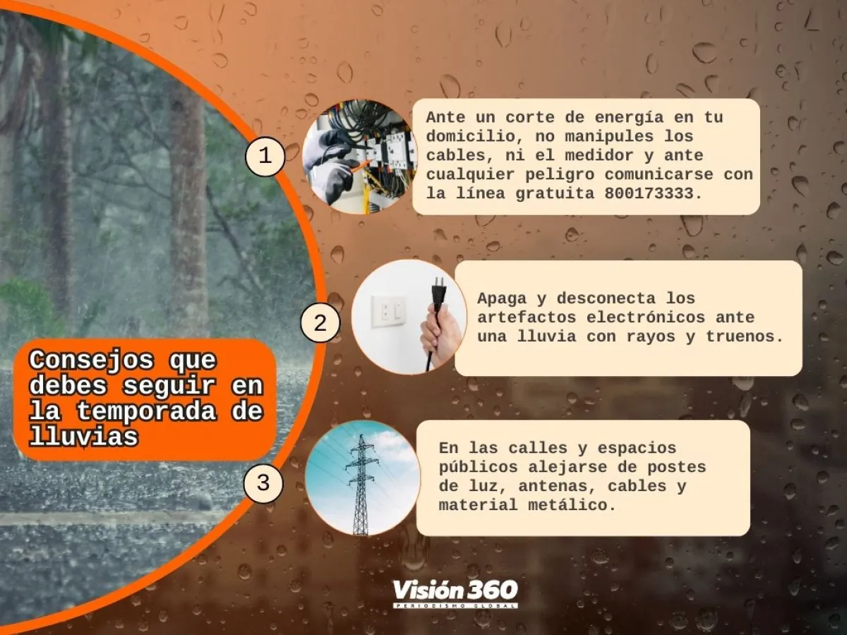 Desde diciembre de 2024, Bolivia ha ingresado en la temporada de lluvias, cuando las tormentas eléctricas son periódicas, por eso es importante que la población tome precauciones y en el hogar se desconecten los artefactos eléctricos, no se manipulen cables y, si está en la calle, se aleje de postes, antenas y árboles en caso de truenos y rayos.