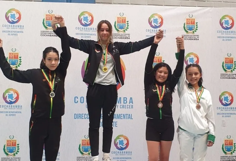 Igual destacó la cochabambina Briana Sandoval al cosechar dos oros en espada femenino Pre Cadete y Cadete, además de una plata en Juvenil.