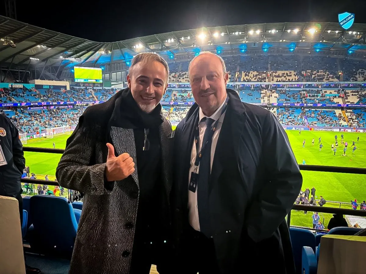 Lo mismo hizo Robatto, aunque se sacó una instantánea con el DT español Rafael Benítez, que en 2005 se consagró campeón de la Champions dirigiendo al Liverpool inglés.