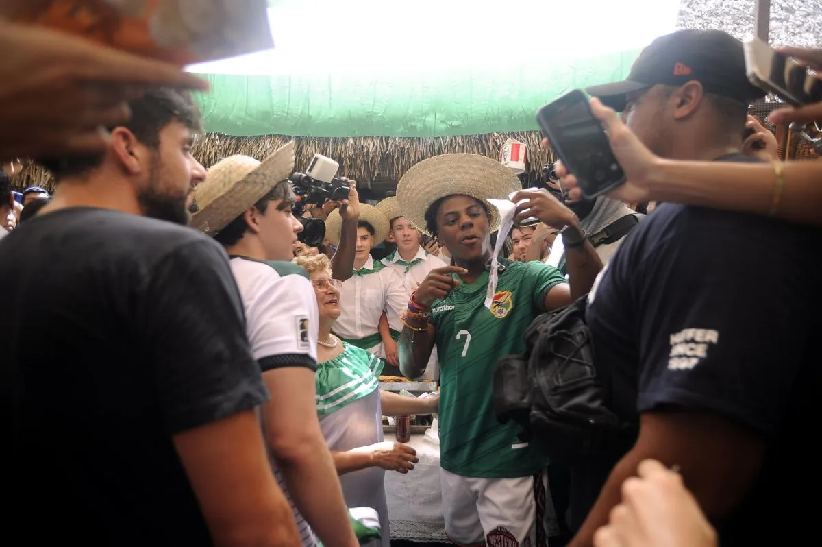Con un fuerte resguardo, la famosa celebridad de internet paseó por las calles tradicionales donde sus fanáticos le pusieron un sombrero de sao, típico de esa región, y le hicieron bailar taquirari, una danza tradicional boliviana.