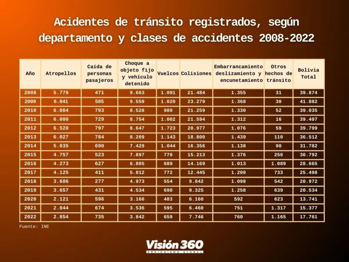 Según datos de la empresa de Seguros y Reaseguros Personales Univida S. A., Santa Cruz de la Sierra lidera las estadísticas de siniestralidad en Bolivia, registrando el 49,9% de los accidentes ocurridos entre enero y noviembre de 2024. Durante este período se reportaron 18.904 siniestros en toda Bolivia, de los cuales 9.431 se concentraron en esta región, dejando un saldo de 11.002 personas afectadas.