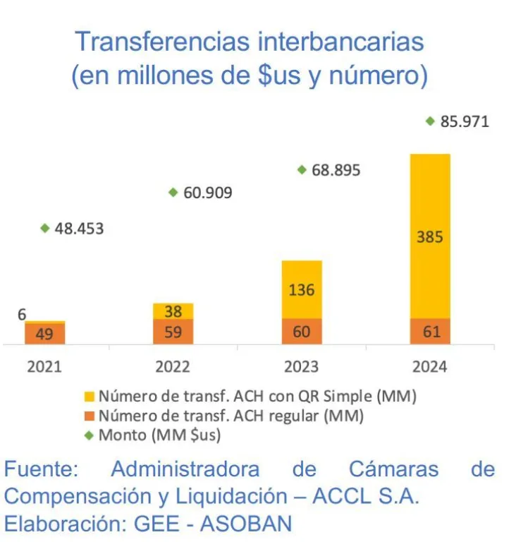 De acuerdo con Asoban, los avances en la digitalización de los servicios financieros han permitido alcanzar niveles récord en transferencias electrónicas, con un permanente aumento del uso de la banca digital y móvil.