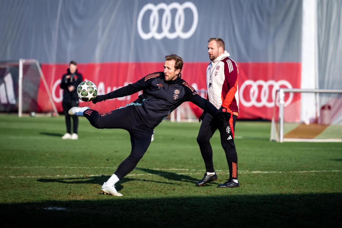 El inglés Harry Kane patea la pelota. Foto: Bayern de Múnich.