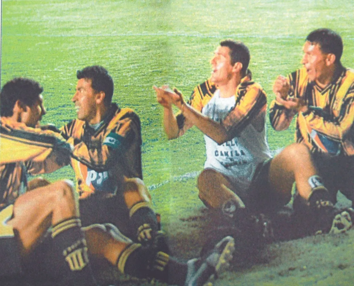 El partido se jugó el martes 20 de marzo, hace casi 35 años.El aurinegro se impuso por 4 a 3, pero en dos oportunidades estuvo abajo en el marcador y en ambas supo reaccionar.