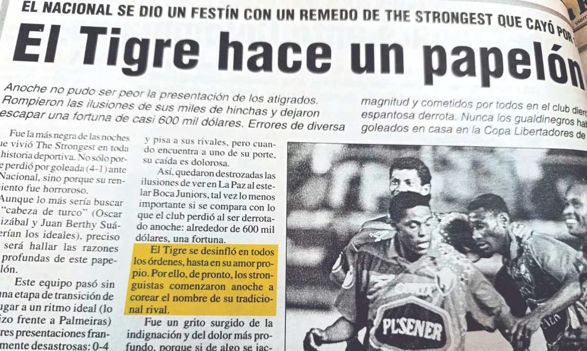 En esa misma Copa, la de 2000, el Tigre cerró la campaña frente a El Nacional de Ecuador en el Siles. Necesitaba un triunfo para avanzar a octavos de final, pero fue victoria de los visitantes por 1-4.