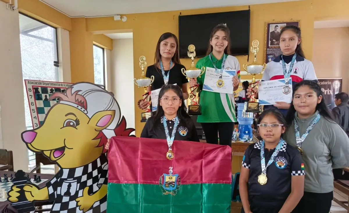 Las premiadas de la rama femenina. Foto: Federación Boliviana de Ajedrez.